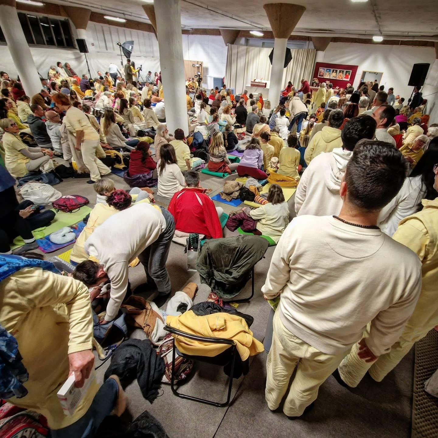 Za nami so energije in emocij polni satsangi v soboto in nedeljo, pri čemer nas je s svojo osebno navzočnostjo v nabiti polni dvorani v nedeljo na dopoldanskem in popoldanskem satsangu počastil prav Višvagurudži osebno. Odmevali so srčni badžani (duhovne pesmi) ob zvokih harmonija in tolaka, odmevale so njegovo milostljive besede in srčni pogledi. Na njemu lasten simboličen način je ponovno prižgal lučke v srcih vseh zbranih in vseh po vsem Svetu, ki so spremljali srečanja preko Swamiji.tv. Danes lahko z veseljem ugotovimo, da smo učenke in učenci Joge v vsakdanjem življenju pripravljeni na novo leto in vanj vstopamo polni optimizma, predanosti in srčnosti.